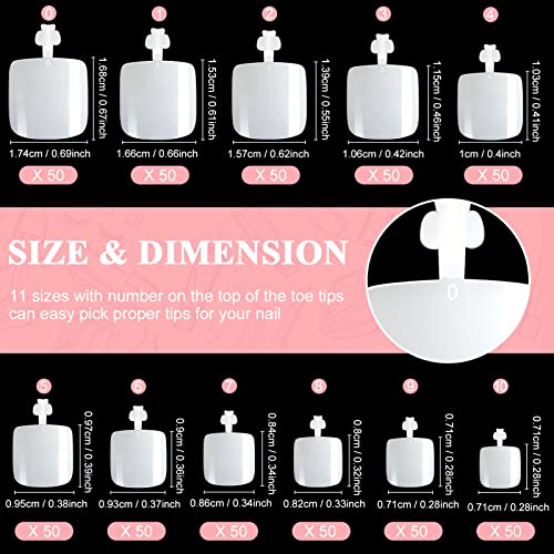 550 Pezzi Unghie Finte Piedi, Tip Unghie Piedi Fake Nails Tips Piedi False Toenail pour Salons de Manucure et Décoration de Pieds DIY avec Transparent Boîte(11 Misure)