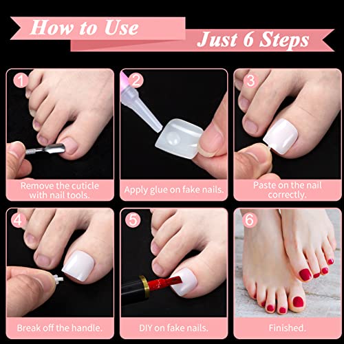 【Facile da usare】Le fake nails tips piedi sono facili da usare. Applica la colla gel sull'unghia finta piedi, quindi premi per 10 secondi, puoi tagliare, dipingere e applicare lo smalto per unghie in gel per completare l'estensione delle unghie in soli 20 minuti e durare per 3-4 settimane!