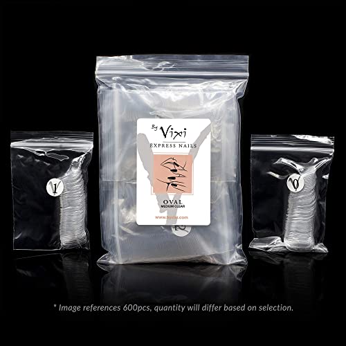 By Vixi 600 pezzi SET PER UNGHIE MEDIE OVALI, COLLA LIBERA E LIMA DI PREPARAZIONE, 10 misure - Trasparente Estensioni per unghie finte a copertura totale per saloni di bellezza e uso domestico