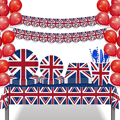 Set da 98 pezzi Union Jack Party Supplies Union Jack Teller Best of British Kids Party Table Kit Royal Party Decoration 16 ospiti (1)