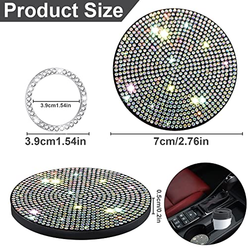 【SOTTOBICCHIERI SET】 Il nostro set di sottobicchieri auto Strass include 4 sottobicchieri per auto con diamanti d'acqua di diversi colori, 2 anelli decorativi per pulsante di avviamento dell'auto e 2 adesivi. Questo pacchetto è conveniente ed economico, aumenta l'estetica della tua auto e riduce il tempo necessario per scegliere altri accessori per auto decorativi.