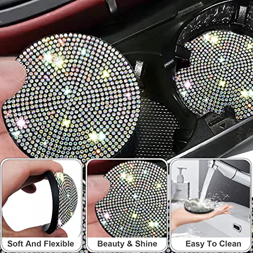 4 Pezzi Universale Sottobicchieri per Portabicchieri Auto,7cm Gomma Antiscivolo Sottobicchieri Auto Strass di Cristallo Accessori Auto Impermeabile con 2 Anello Decorativo e 2 Adesivo per Uomo,Donna
