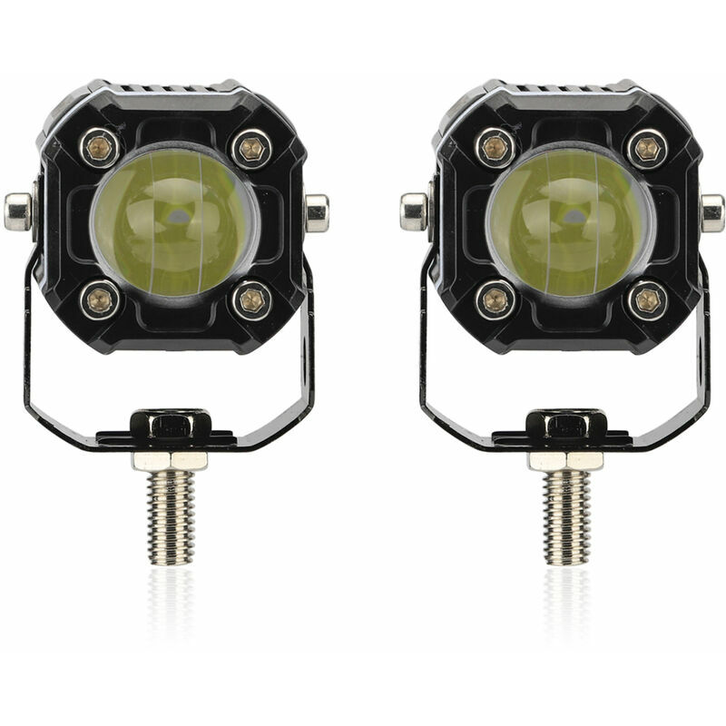 Specifiche: Colore: nero Materiale: lega di alluminio + PC Potenza: 60 W anabbaglianti, 60 W alti beam Luminosità: 3000LM Durata della vita: 50000H Modalità luminosa: anabbaglianti bianchi, abbaglianti gialli, abbaglianti e anabbaglianti luminosi al allo stesso tempo, gli abbaglianti e gli anabbaglianti lampeggiano contemporaneamente Lampada d'atmosfera: luce rossa, luce blu, rosso+;