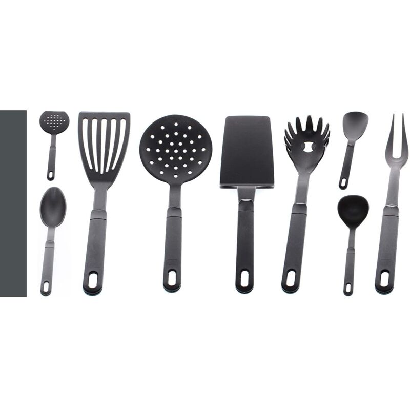 Descrizione SET 9 UTENSILI DA CUCINA REALIZZATI IN NYLON PA66. RESISTENTI AL CONTATTO FINO A 210°C, ANTIADERENTI ED ANTIGRAFFIO, LAVABILI IN LAVASTOVIGLIE, IL SET E' COMPOSTO DA UN PEZZO PER MODELLO DEI SEGUENTI ARTICOLI: SERVISPAGHETTI, MESTOLO, PALAHAMBURGER, PALAFRITTO, CUCCHIAIONE, SCHIUMAROLA, CUCCHIAIO RISO, PALALASAGNE E FORCHETTONI. LEGGERI, PRATICI E RESISTENTI SODDISFANO TUTTE LE NECESSITA' IN CUCINA. Avviso di sicurezza NON LASCIARE NELLA PADELLA/PENTOLA PER TEMPO PROLUNGATO IN FASE DI PREPARAZIONE ALIMENTI O IMMEDIATAMENTE DOPO AVER FINITO LA COTTURA.