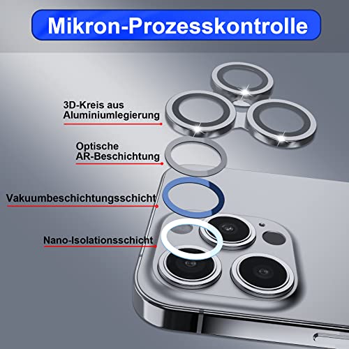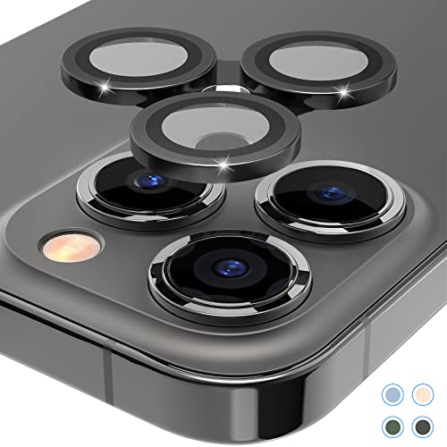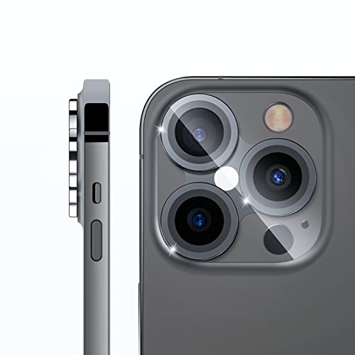 2 Pezzi - Uyiton Compatibile con iPhone 13 Pro/Pro Max Pellicola Fotocamera, 2 Pezzi Vetro Temperato Protezione Lente Pellicola, Anello di Metallo Durezza 9H, Anti-Graffio, Senza Bolle - Grigio