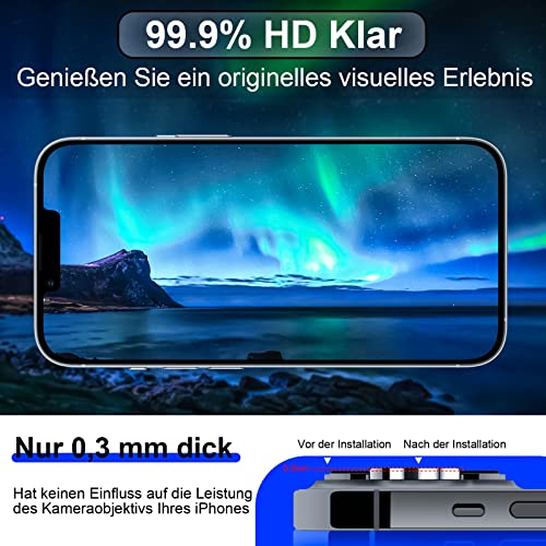 [Tecnologia Antiriflesso] - Proteggi fotocamera ermetico di nuova concezione, realizzato in materiale di alta qualità, con antiriflesso AR, assicurando che immagini e video abbiano uno schermo ad alta definizione e cristallino con risoluzione nativa. Grazie al vetro di trasmissione della luce del 99,99%, questo vetro di protezione della fotocamera per iPhone ti consente di mantenere una maggiore chiarezza e risoluzione di immagini e video.