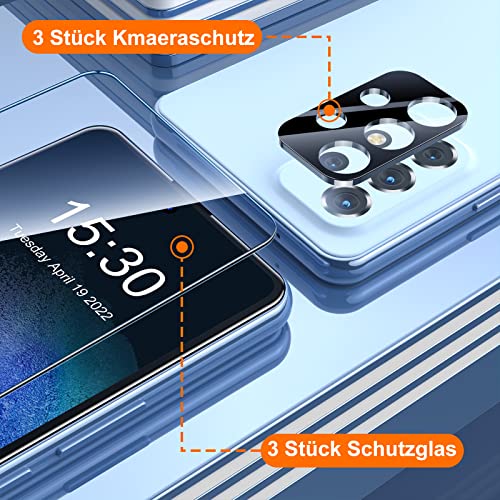 6 Pezzi - Uyiton Pellicola protettiva militare compatibile con Samsung Galaxy A53 5G Vetro Temperato, 3 Pellicola Protettiva e 3 Pellicola Fotocamera, Senza Bolle HD Facile Kit D'Installazione