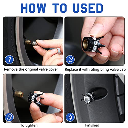 Cosa ricevi: riceverai 8 tappi per valvole con strass per auto, ognuno dei quali misura ca. 0,59 x 0,51 pollici/ 15 x 13 mm, sufficienti per l'uso, la sostituzione e la condivisione