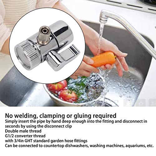 Doppia filettatura esterna: le filettature del deviatore sono G1/2, standard per tubi doccia convenzionali, con raccordi per tubi da giardino standard GHT da 3/4 pollici per il collegamento a lavastoviglie da banco, lavatrici, acquari, ecc.