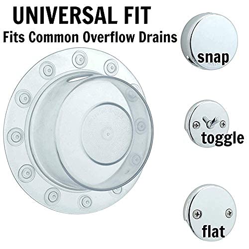VELOCE E FACILE DA USARE: la nostra cover è la più facile da usare! Basta bagnare le ventose, posizionare il coperchio sullo scarico del troppo pieno della vasca e premere ciascuna ventosa contro la vasca per creare una tenuta. È così semplice! Inoltre, la copertura si adatta a molti tipi di vasche da bagno con scarichi di troppopieno comuni, inclusi i modelli a ginocchiera, a scatto, a leva o piatti. Misura 6,3 pollici di diametro con una profondità di 2 pollici.
