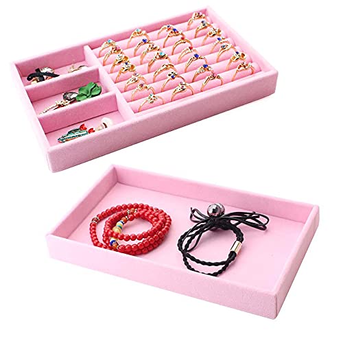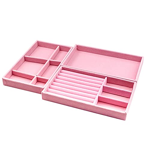 3 Pezzi Vassoio per Gioielli, Vassoi per Esposizione di Gioielli, Organizzatore Vassoi per Gioielli Impilabili, Rimovibile Multiuso Piatto Anello in Velluto per Orecchino, Collana, Anello (Rosa)