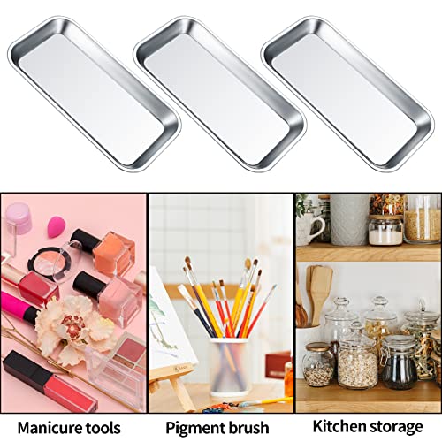 4 Pezzi Vassoio Portastrumenti, Vassoi Rettangolari in Acciaio Inox, Vassoio da Laboratorio per Dentale Piatti da Laboratorio - 22,5x11,5x1,6 cm