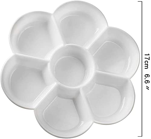 2 Pezzi Vassoio per tavolozza, tavolozza acquerelli, tavolozza Rotonde di plastica con 7 pozzetti, per Miscelare Colori a Olio Acrilici Acquerelli tavolozza pittura bambini Diametro 17 cm, Bianco