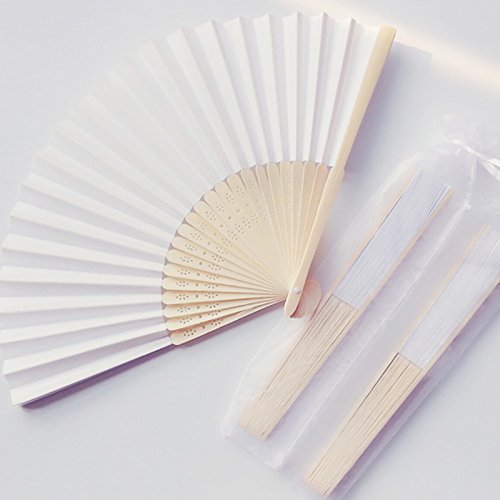 70 PEZZI VENTAGLI VENTAGLIO BIANCO BAMBU' BAMBOO PER MATRIMONIO WEDDING SPOSA Themagicfour®