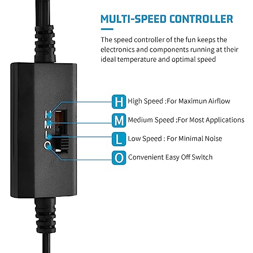 【3 Velocità Regolabili】: La doppia ventola di raffreddamento del PC ha un interruttore di velocità con 3 livelli (L/M/H) per controllare la velocità dell'aria per soddisfare le varie esigenze di dissipazione del calore. Grande volume d'aria, basso rumore, raffredda efficacemente il tuo dispositivo.