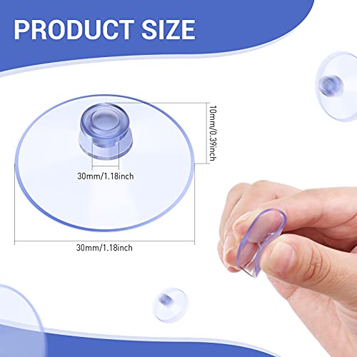 30 Pezzi Ventose Trasparenti Senza Ganci Ventosa in PVC con Testa a Fungo Cuscinetti a Ventosa con Bottoni Tondi per Finestra, Vetro, Piastrelle, Specchi, 30 mm