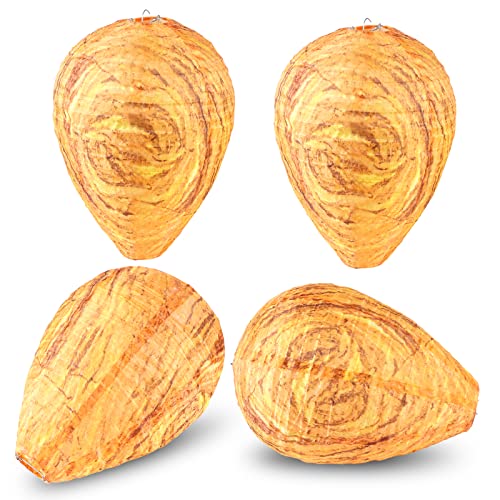 4 Pezzi Nido di Vespe Esca, Esca Nido di Vespe Appeso, Trappola per Vespe, Nido di Vespe Finto, per Appendere All'aperto in Giardino, Patio e Grondaie Esterno In Case Giardini