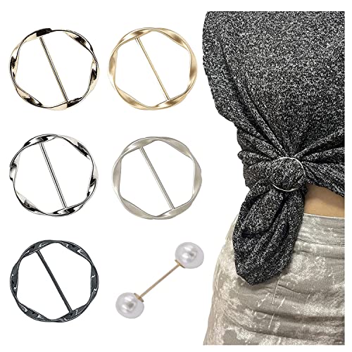 5 Pezzi Vestiti Angolo Annodato Bottone Sciarpa Anello Clip Moda Seta Fibbia Rotonda Metallo Cerchio Chiusura Signora Vita T-Shirt Fermacravatta con Perla Spilla Avvolgere Titolare Decorativo