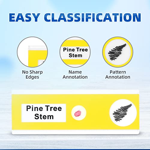 【Classificazione chiara】4 set di vetrini per microscopio preparati, ciascuno con 12 campioni diversi. Ogni vetrino preparati è contrassegnato dal nome inglese del campione e dal immagine del campione, in modo che i bambini e gli studenti possano trovare facilmente ciò che vogliono osservare.
