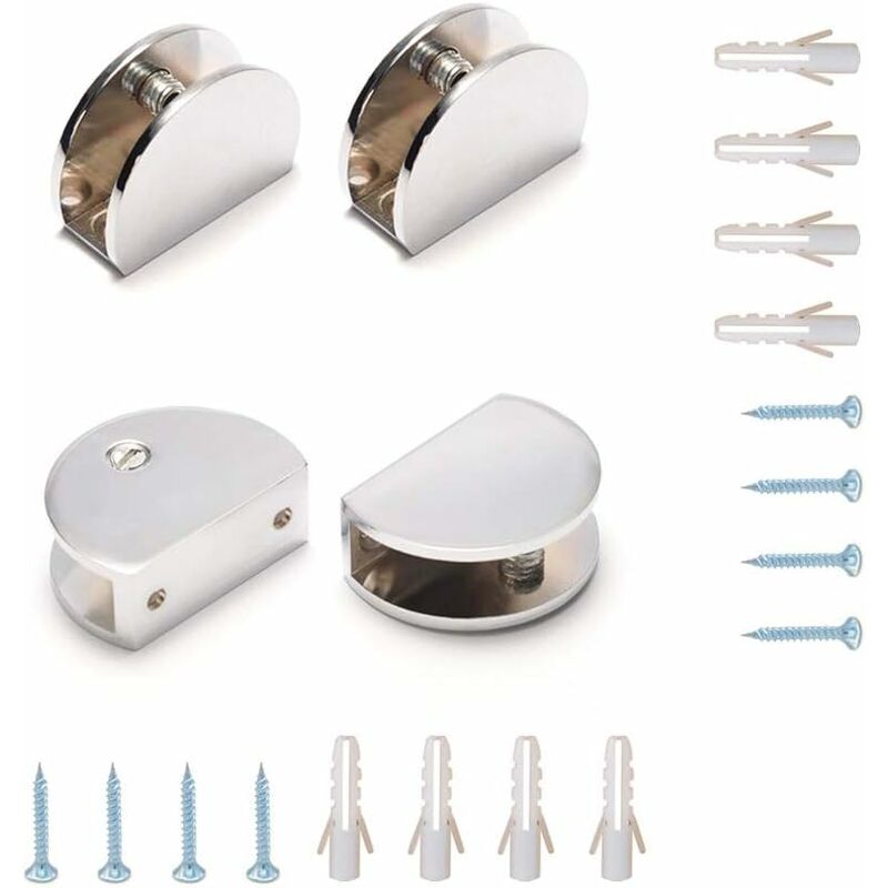 L'artigianato squisito, l'aspetto rotondo ed elegante possono proteggere te e la tua famiglia. Ampia applicazione: i morsetti per specchietti possono essere utilizzati in bagni, hotel, negozi di barbiere, servizi igienici, tolette, soggiorni, luoghi pubblici, ecc. . Spessore applicabile: adatto per lastre di vetro di spessore 8-10 mm, acrilico, metallo o legno. Contenuto della confezione: il kit di supporti per staffe di fissaggio in vetro è composto da 4 morsetti per specchietti, 8 viti e 8 ancore.