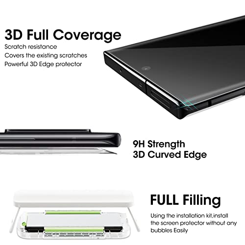3 Pezzi Vetro Temperato Pellicola per Samsung Galaxy S22 Ultra, Compatibile con ID Impronte Digitali,HD Chiaro,Curvo 3D Durezza 9H Vetro Protettore con Strumento di Allineamento Facile da Installare