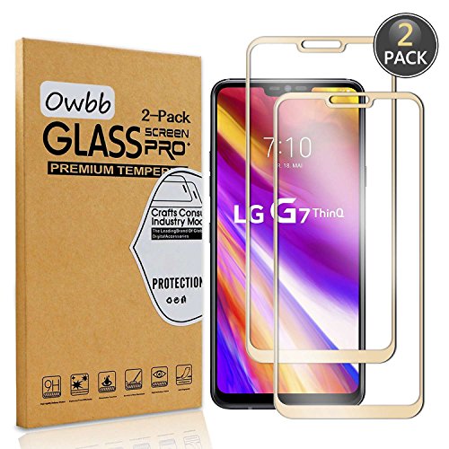 Owbb [2 Pezzi] Gold Vetro Temperato Pellicola per LG G7 ThinQ Full Coverage Protettiva Protezione 9H Durezza 99% Alta Trasparente