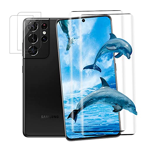 2 + 2 pezzi - Vetro temperato per Samsung Galaxy S21 Ultra, Pellicola protettiva per fotocamera, Vetro temperato senza bolle, Proteggi schermo in vetro temperato per Samsung Galaxy S21 Ultra - Nero