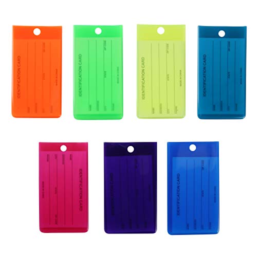 Confezione: 7 etichette flessibili per bagagli, 7 carte d'identità. 7 cinghie. uso su valigie, bagagli, bagaglio a mano, borse a mano, borse da viaggio e zaini.