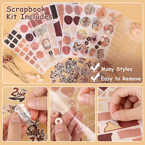 346 Pezzi Vintage Scrapbooking Kit,Aesthetic Scrapbooking Accessori Set con Bullet Junk Journaling con Griglia A6,Scrapbook,Stickers,Carta Decorativa,Regalo Fai da te per Ragazze e Donne Bambini