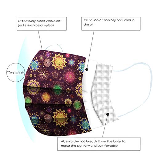 50 Pezzi Viso Visiera Tessuto Bocca, Fiore Magico Stampa Protettiva Stoffa Monouso 3 Strati Traspirante Antipolvere Elastico