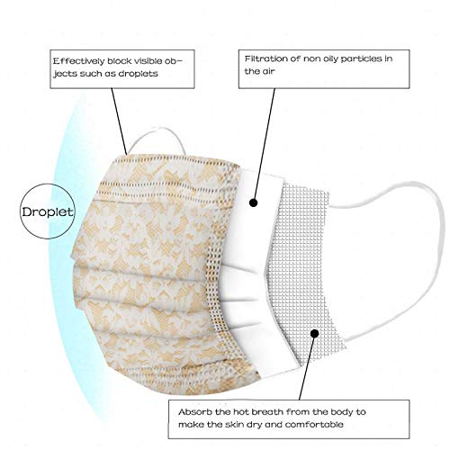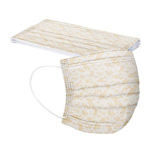 10 Pezzi Viso Visiera Tessuto Bocca, Fiore di Pizzo Modello Stampa Protettiva Stoffa Monouso 3 Strati Traspirante Antipolvere Elastico