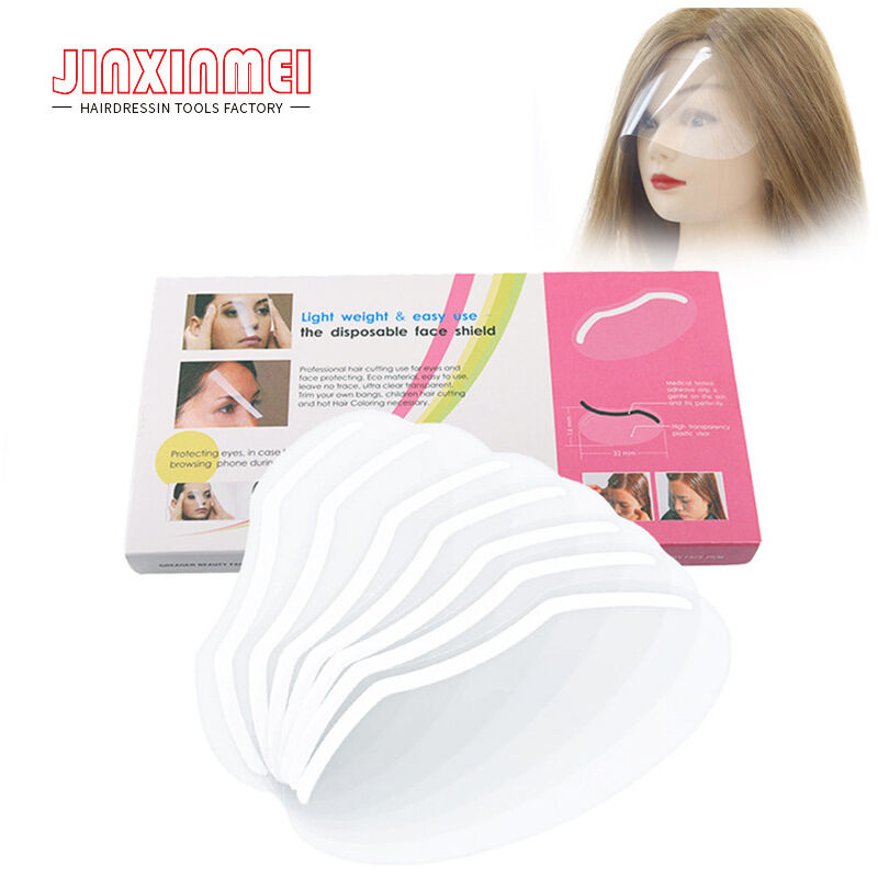 Descrizione del prodotto Dimensioni: 20*9 cm Colore: trasparente materiale: plastica Contenuto della confezione: 50*maschere per il viso 1.Efficace protezione del viso per occhi, sopracciglia, bocca, naso e viso durante i servizi chimici come permanente, tinte calde, candeggina. Niente più lavori extra come pulire il viso con gli asciugamani perché il viso dei tuoi clienti sarà protetto dal bagnarsi. I tuoi trucchi non saranno più interessati da nessun tipo di servizio in salone. Niente più preoccupazioni per il tuo trucco 2. Adatto sia per uso professionale che personale Non solo ottimo per parrucchiere professionista per tagli di capelli, trucchi, microblading, procedure di estensione delle ciglia, ma anche per l'uso quotidiano come l'uso di lacca per capelli, frangia, colorazione calda dei capelli, anche quando sei sotto la doccia.< /p> 3. Facile da usare Basta pulire la fronte, strappare l'adesivo dalla visiera e attaccarlo alla zona della fronte per evitare che i capelli