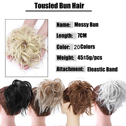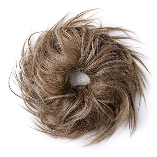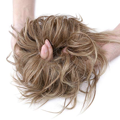 Pezzo di Capelli Disordinati da Panino Hair Estensione dei Capelli Scrunchies con Elastico Tousled Updo Chignon Ricci Sintetici Coda di Cavallo Bun Extension Evidenziazione bionda marrone chiaro