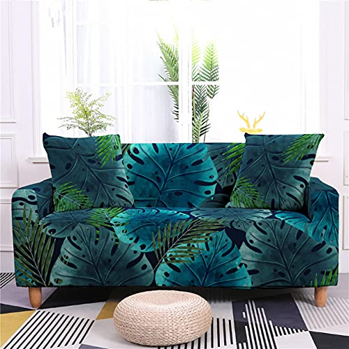 1 Pezzo Copridivano Retrattile in Poliestere Fiore Tropicale Foglia Verde Foglia di Banana Foglia di Tartaruga Retro Fodere Copridivano Antivegetativo Soggiorno Hotel (Colore 6,2 Posti 145-185 cm)