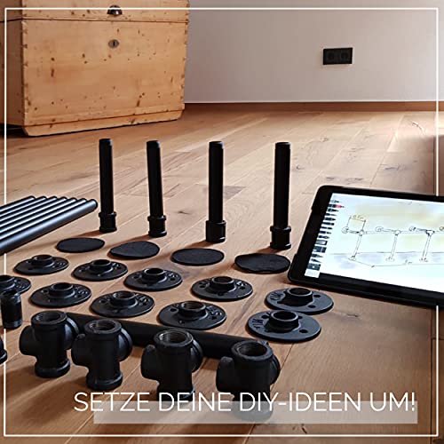 ✔️ Pensato - I pezzi offrono molto spazio creativo! Così puoi dare libero sfogo alla tua creatività e costruire le tue idee e collegare facilmente il tuo tubo in ghisa malleabile con l'aiuto di connettori
