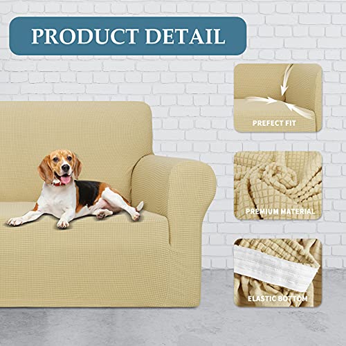 1 Pezzo Elastico Copridivano, Antiscivolo Fodera Divano Morbido Jacquard Tessuto, Mobili Protettore Copertura Per Bambini Pets Gatti Cani-Beige-1 Posti
