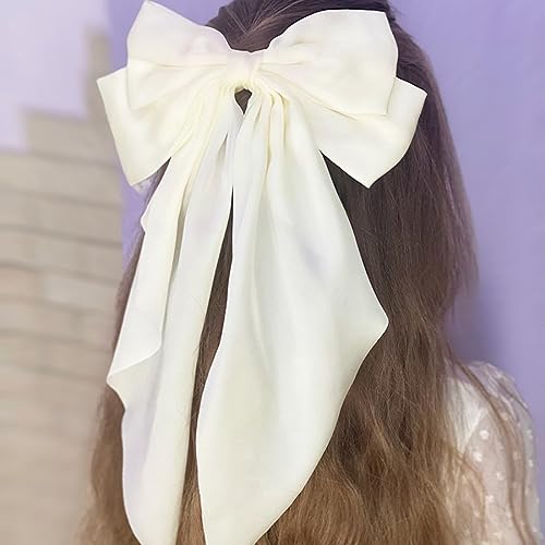 1 Pezzo Grande Fiocco Fermagli Capelli Coda Lunga Nastro Francese Fiocco Forcine Metallo Raso Liscio Setoso Accessori Feste Per Donne E Ragazze (Bianco)
