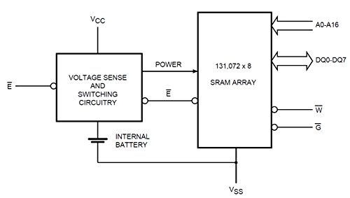 Pin e compatibile con tutte le SRAM 128Kx8 (secondo ogni standard) come 6228 e DS1245/BQ4013