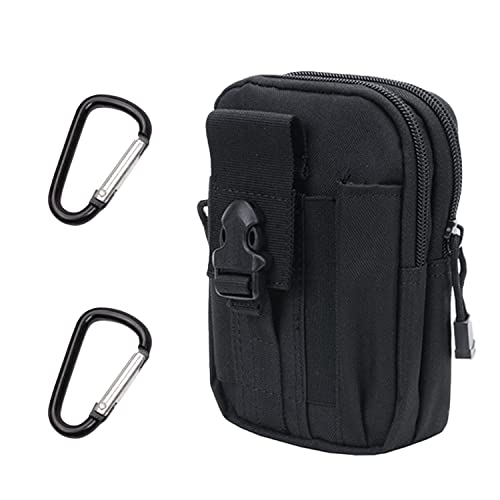 1 pezzo di marsupio esterno con 2 moschettone in lega di alluminio, borsa accessori multifunzione, marsupio impermeabile portatile, borsa per cellulare, adatto per ciclismo e trekking (nero)