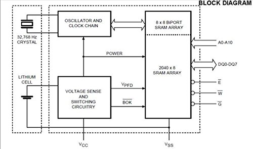 Pin e compatibile con qualsiasi SRAM 2Kx8 (secondo standard JEDEC), come 6116, 5517 e DS1642, M48T12, M48T02