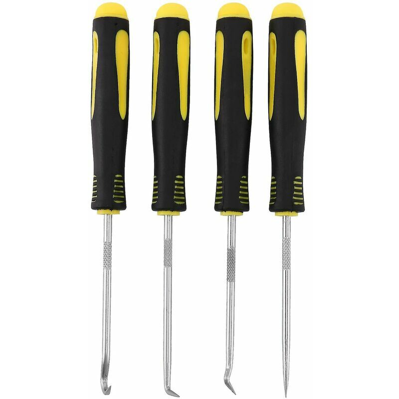 Acciaio e materiali plastici di alta qualità, con elevata durezza e impugnature antiscivolo. Riutilizzabile e durevole. Facile da usare. Rimuovere i paraolio, l'anello di aspirazione della molla, le rondelle. Manico bimateriale, aste in acciaio inox. Acciaio legato di alta qualità, elevata durezza, difficile da indossare. Può essere utilizzato compatibilmente con una varietà di applicazioni di trascinamento e marcatura. Diametro impugnatura: gomma Materiale soggetto: acciaio legato di alta qualità Lunghezza totale: circa 170 mm Colore: nero + giallo Contenuto della confezione: 4 * cacciavite per paraolio Solo il contenuto del pacchetto sopra, altri prodotti non sono inclusi. L'errore di misura consentito è di +/- 1-3 cm.