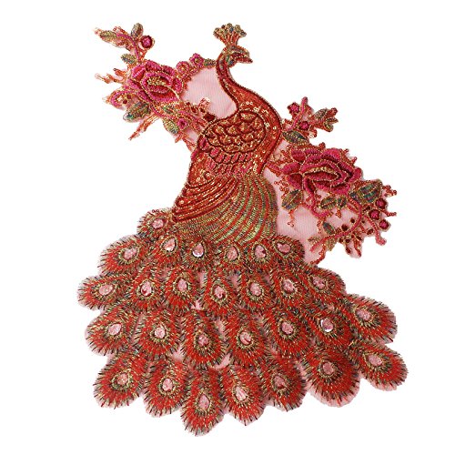 (Applique da sposa) Cucire su perline strass pavone applique da sposa patch