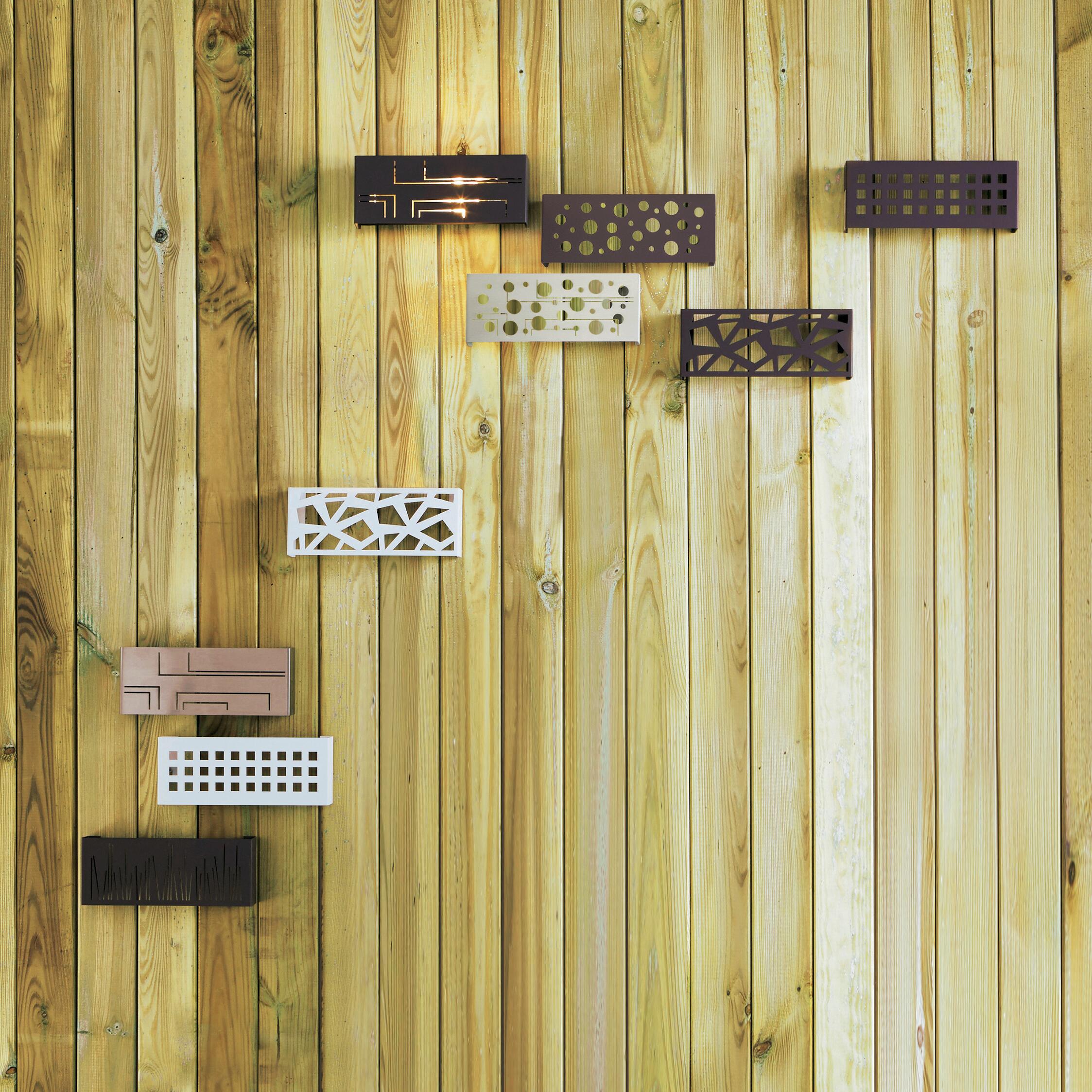 In alluminio, dimensioni L 26,5 x H 10,5 cm