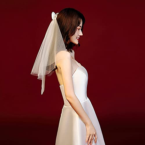 通用 1 Pezzo Velo da Sposa Semplice Ed Elegante con L'Arco, Velo per Capelli da Sposa, in Tulle, Velo da Sposa Tulle Corto, Velo Corto con Pettinino per Matrimonio, Addio al Nubilato