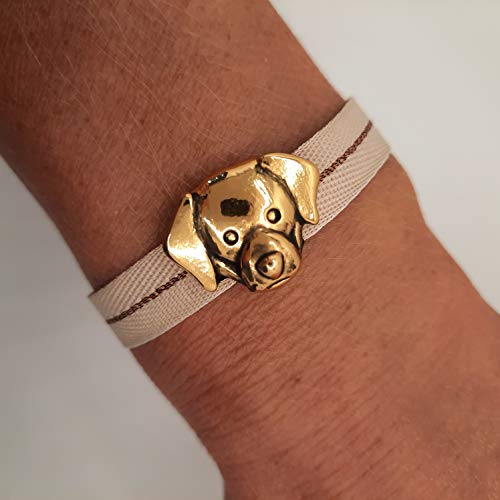 Nora Pfeiffer Bracciale nodo in tessuto con ciondolo a forma di cane in ottone placcato argento o placcato oro senza nichel, Poliestere,