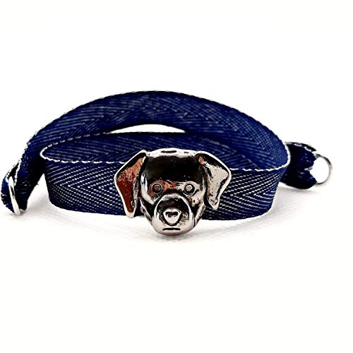 Nora Pfeiffer Bracciale nodo in tessuto con ciondolo a forma di cane in ottone placcato argento o placcato oro senza nichel, stoffa,