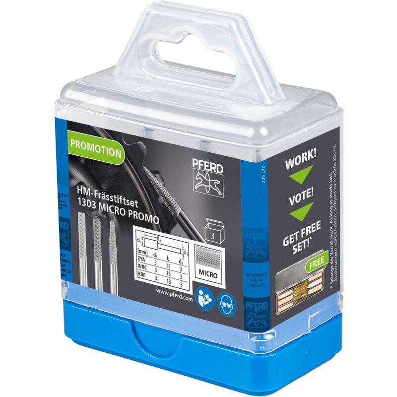 I set contengono tre matite di fresatura in metallo duro nelle forme e nelle dimensioni più comuni. Dai lavori di pulizia molto fine all'affilatura degli utensili da taglio alle correzioni di filigrana nella costruzione di utensili e forme, barriere per metalli duri con l'innovativa micro di denti che offrono la soluzione ottimale degli utensili per una varietà di applicazioni nella multa. La scatola di plastica infranta protegge gli strumenti da sporco e danni.
