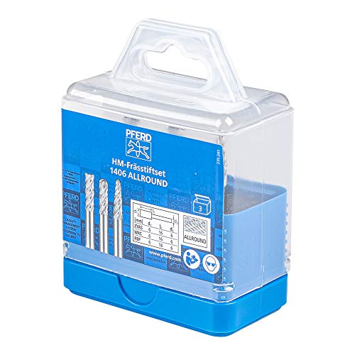 Contenuto della confezione: 1 x set di punte per fresa HM PFERD Allround/composto da: 3 x punte HM in diverse forme/con dentatura allround, punta per fresa ø 6 mm e codolo ø 6 mm/in scatola di plastica infrangibile