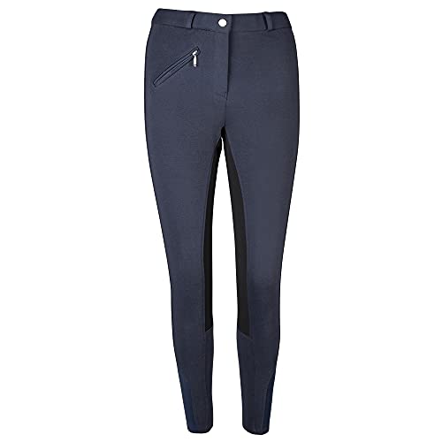 PFIFF 102290 Thea - Pantaloni da Equitazione da Donna, in Ecopelle, con Inserti Completi, Colore: Blu/Nero 46