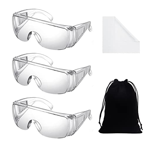 [Contenuto della confezione]: riceverete 3 occhiali protettivi, 1 sacchetto di flanella nera e 3 pezzi di panno per occhiali bianco. La dimensione degli occhiali è di 16 x 6 x 4,5 cm, la dimensione della borsa in flanella nera è di 13 x 18 cm e la dimensione del panno bianco è di 6 x 8 cm. La combinazione di abiti può soddisfare le vostre esigenze quotidiane di protezione e pulizia.